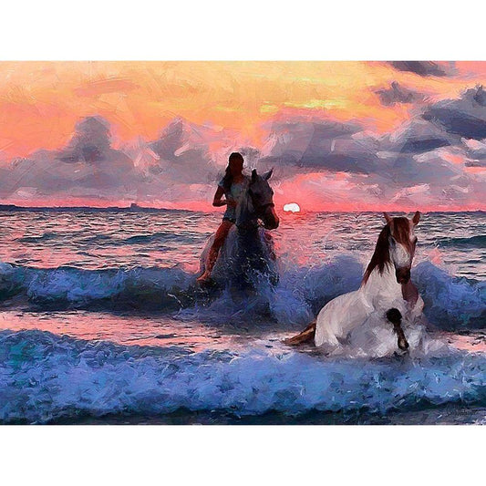 Girl Riding in the Sea Gold Ornate Wood Framed Art Print with Double Matting by Medeiros, Celito