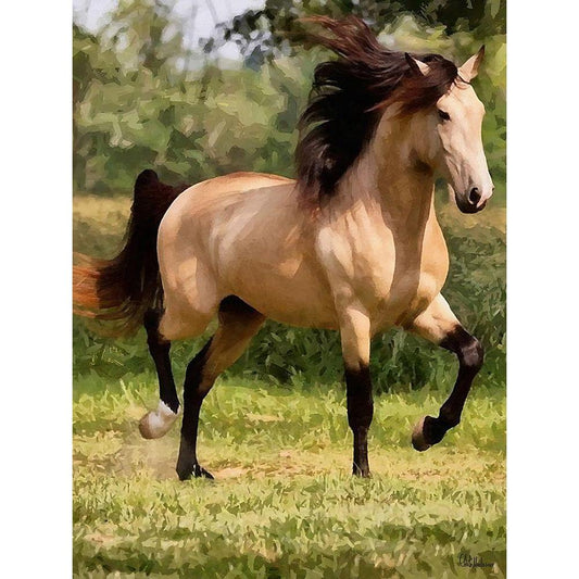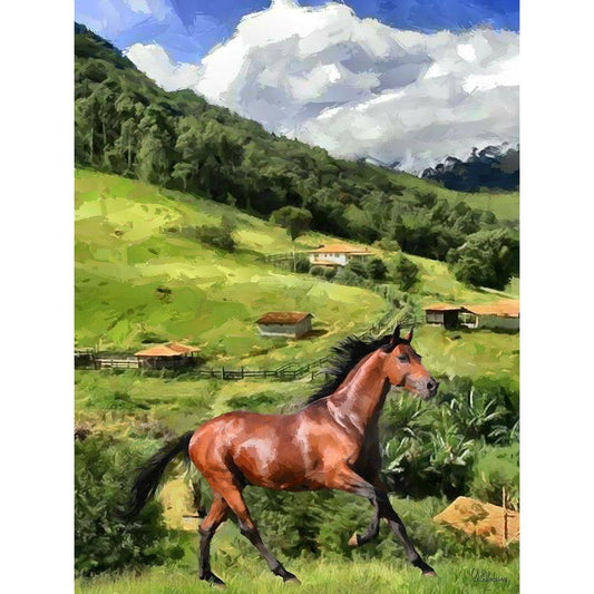Running Horse in Countryside Gold Ornate Wood Framed Art Print with Double Matting by Medeiros, Celito
