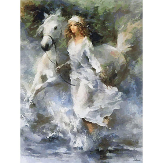 Girl with White Horse Gold Ornate Wood Framed Art Print with Double Matting by Medeiros, Celito