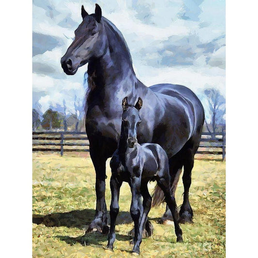 Mare with her Foal Gold Ornate Wood Framed Art Print with Double Matting by Medeiros, Celito
