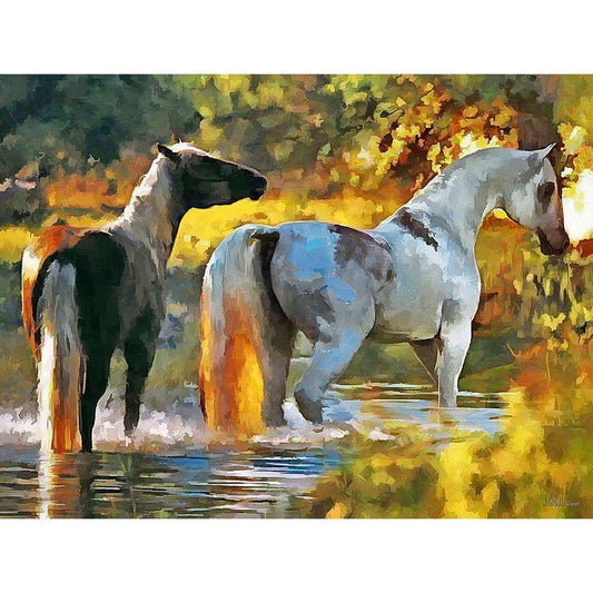 Horses in Water Gold Ornate Wood Framed Art Print with Double Matting by Medeiros, Celito