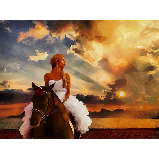 Bride on Horseback Gold Ornate Wood Framed Art Print with Double Matting by Medeiros, Celito