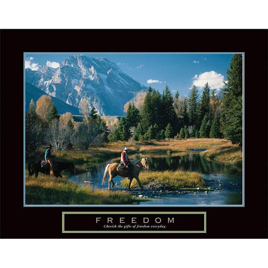Freedom - Cowboys Gold Ornate Wood Framed Art Print with Double Matting by Unknown