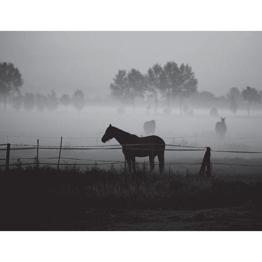 Grazing in the Mist Gold Ornate Wood Framed Art Print with Double Matting by Anonymous