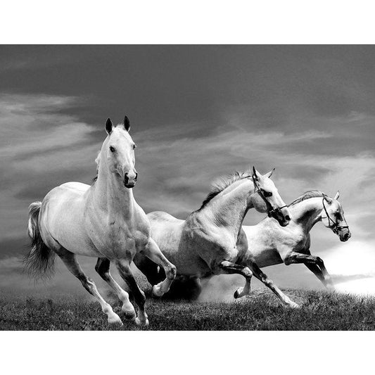 Three White Stallions Gold Ornate Wood Framed Art Print with Double Matting by Itina, Maria