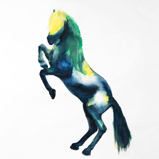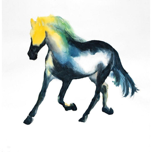 Galloping Colorful Horse Gold Ornate Wood Framed Art Print with Double Matting by Atelier B Art Studio