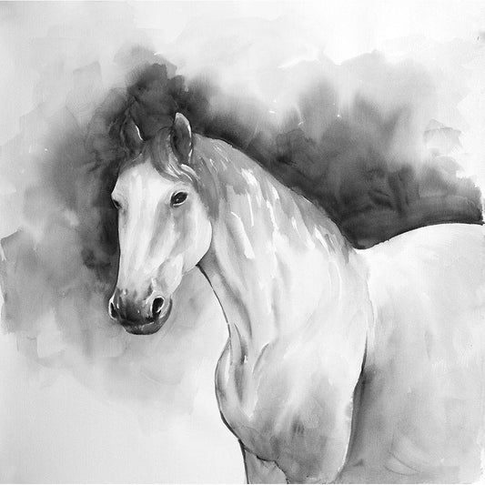 BLACK AND WHITE HORSES Gold Ornate Wood Framed Art Print with Double Matting by Atelier B Art Studio