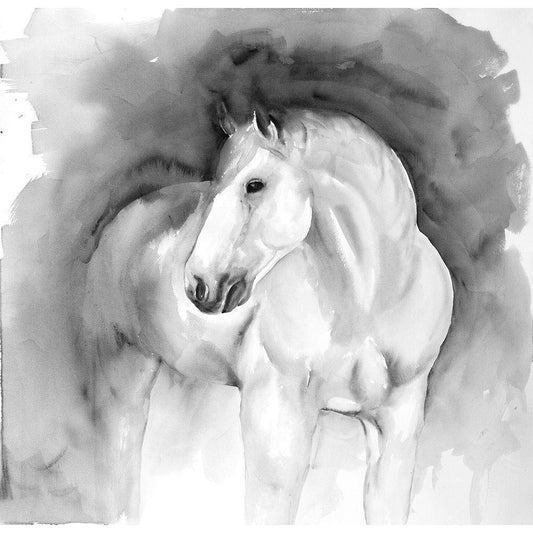 Gallant White Horse Gold Ornate Wood Framed Art Print with Double Matting by Atelier B Art Studio