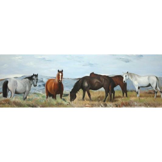 Herd of Wild Horses Gold Ornate Wood Framed Art Print with Double Matting by Atelier B Art Studio
