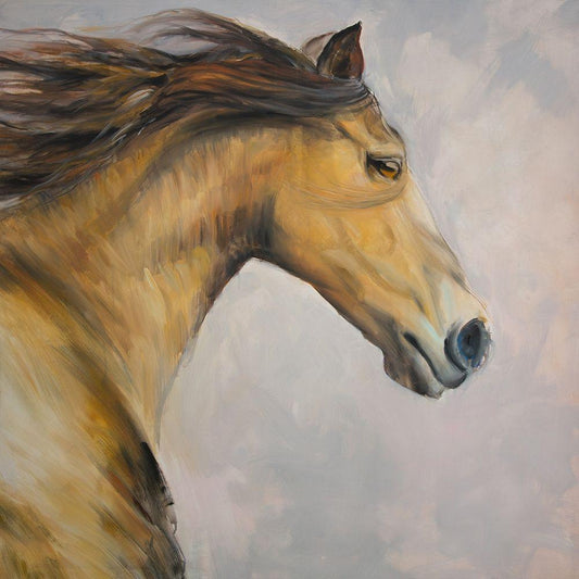 PROUD STEED WITH HIS MANE IN THE WIND Gold Ornate Wood Framed Art Print with Double Matting by Atelier B Art Studio