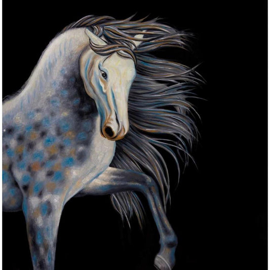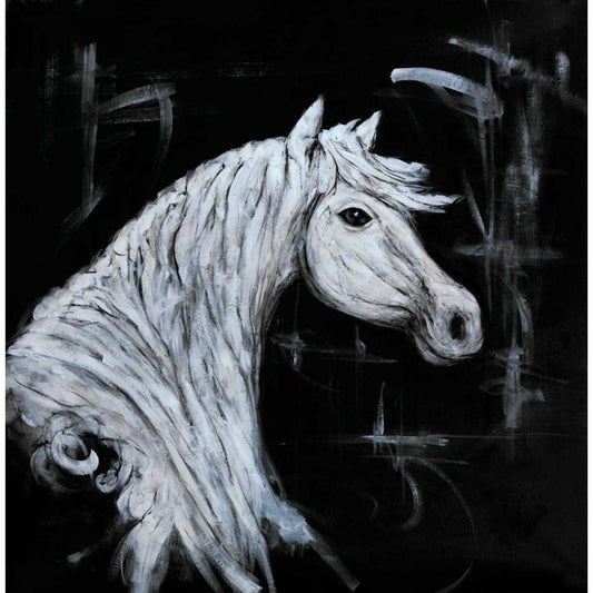 WHITE HORSE IN THE DARK Gold Ornate Wood Framed Art Print with Double Matting by Atelier B Art Studio