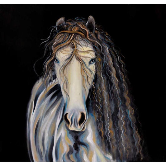 Abstract Horse with Curly Mane Gold Ornate Wood Framed Art Print with Double Matting by Atelier B Art Studio