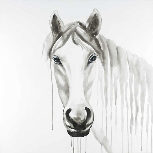 PROUD WHITE HORSE Gold Ornate Wood Framed Art Print with Double Matting by Atelier B Art Studio