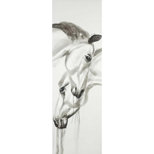Black and White Horses Gold Ornate Wood Framed Art Print with Double Matting by Atelier B Art Studio