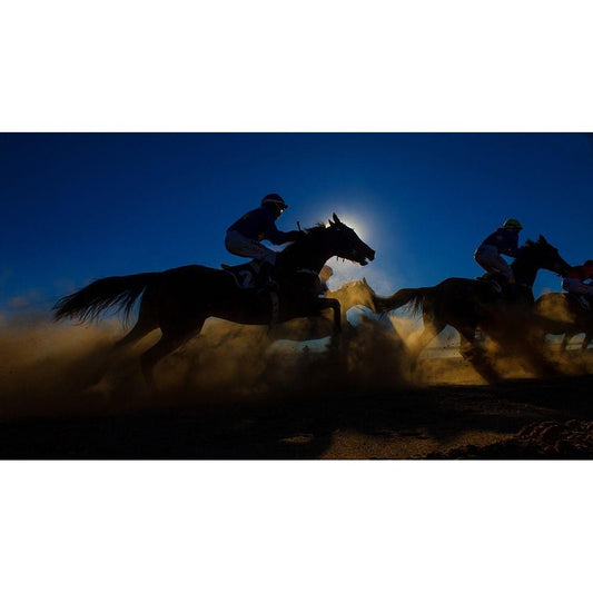 Horse Racing Gold Ornate Wood Framed Art Print with Double Matting by Little7