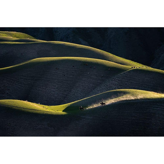 HerdsmanS Life Gold Ornate Wood Framed Art Print with Double Matting by Liao, Yuhan