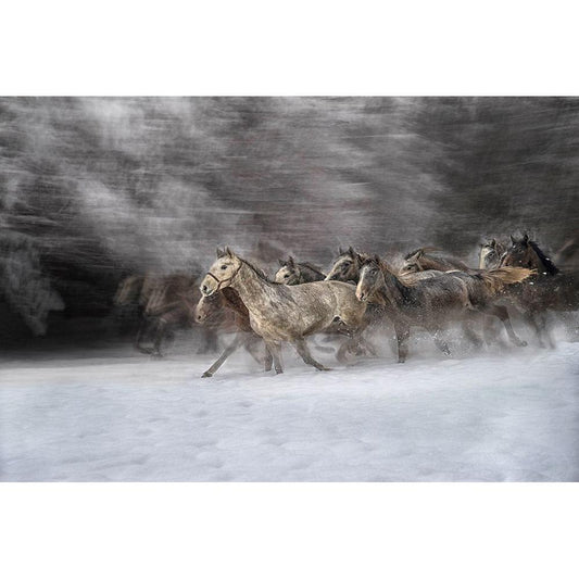 Horses Gold Ornate Wood Framed Art Print with Double Matting by Summer2016