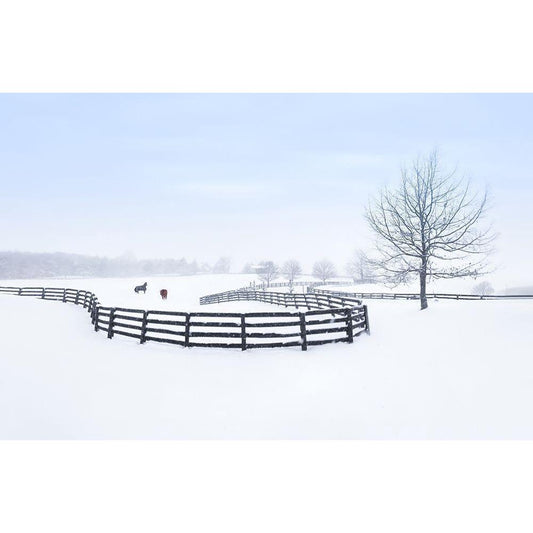 Winter Farm Gold Ornate Wood Framed Art Print with Double Matting by Deng, Larry