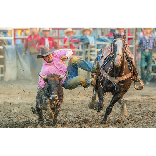 Steer Wrestling Gold Ornate Wood Framed Art Print with Double Matting by Hua, David