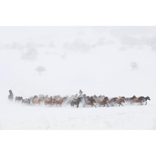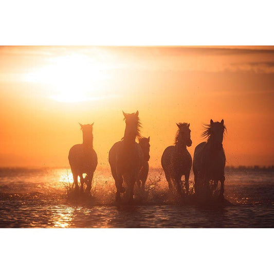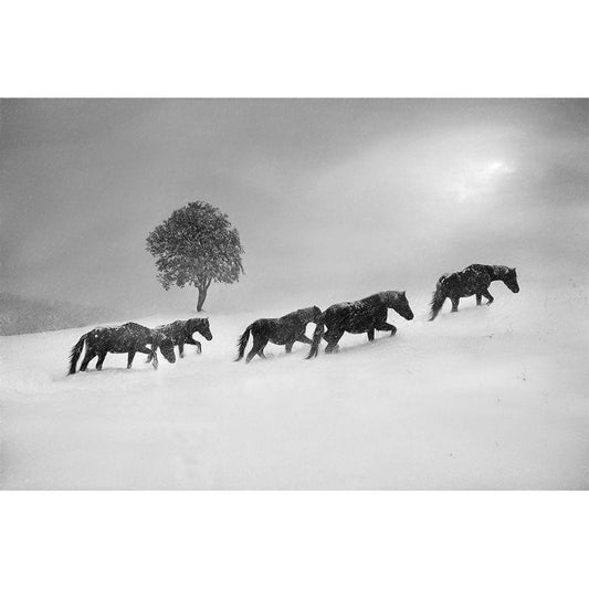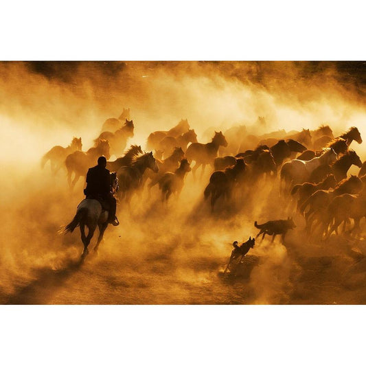 Wild Horses Gold Ornate Wood Framed Art Print with Double Matting by Bedir, Mehmet