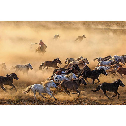Horse Run Gold Ornate Wood Framed Art Print with Double Matting by Wong, Adam