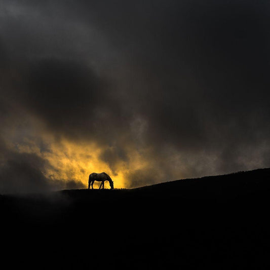 Lone Horse Gold Ornate Wood Framed Art Print with Double Matting by Eliash, Tomer