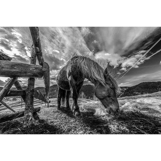 Horse Run In The Snow Gold Ornate Wood Framed Art Print with Double Matting by Wong, Adam