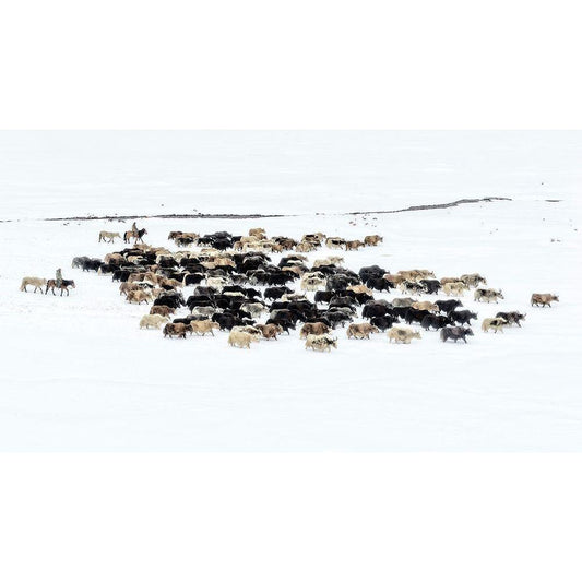 Yaks In Snow Gold Ornate Wood Framed Art Print with Double Matting by Zhu, Hua