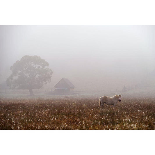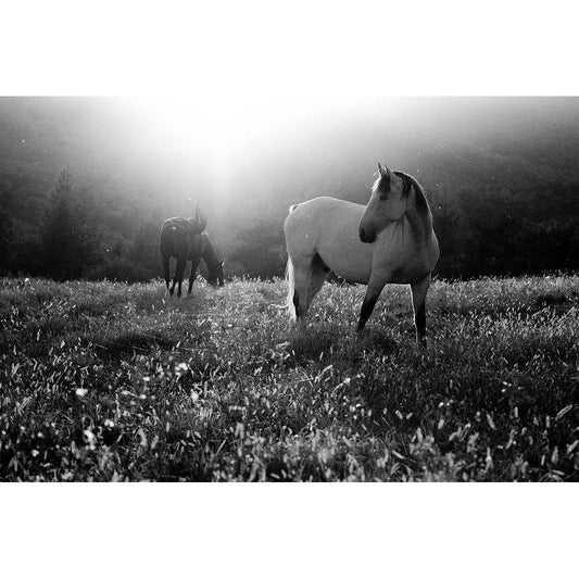 Horses Hight Key Gold Ornate Wood Framed Art Print with Double Matting by De Simone, Ciro