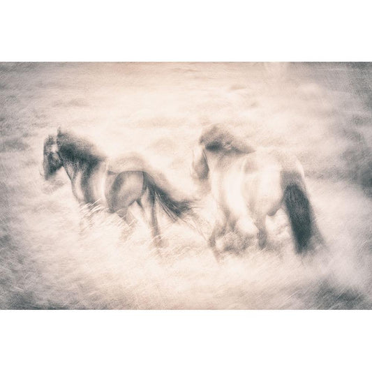 Lost Horses Gold Ornate Wood Framed Art Print with Double Matting by Taskin, Huseyin
