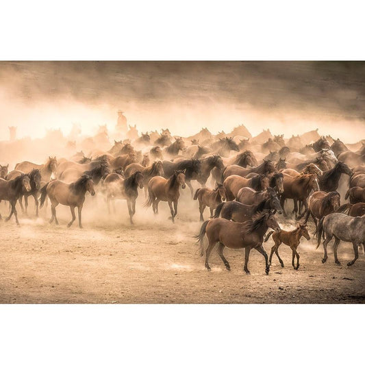 Migration Of Horses Gold Ornate Wood Framed Art Print with Double Matting by Taskin, Huseyin
