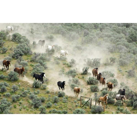 WA, Malaga, Horses form V shape during roundup Gold Ornate Wood Framed Art Print with Double Matting by Kirkland, Dennis