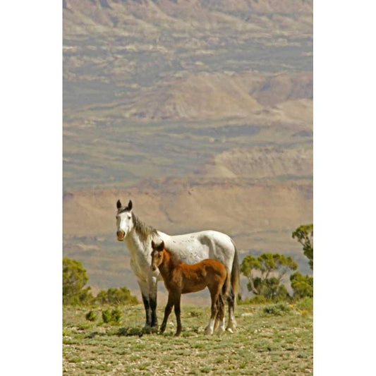 Wyoming, Carbon County Wild horse mare and colt Gold Ornate Wood Framed Art Print with Double Matting by Illg, Cathy and Gordon