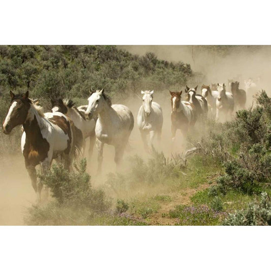 WA, Malaga, Running horses kicking up dust Gold Ornate Wood Framed Art Print with Double Matting by Kirkland, Dennis