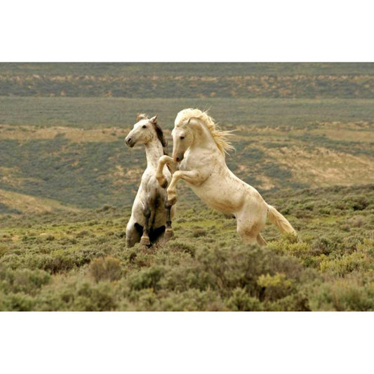 WY, Carbon Co, Wild stallions fighting Gold Ornate Wood Framed Art Print with Double Matting by Illg, Cathy and Gordon