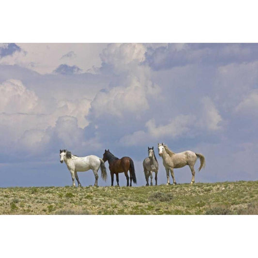 WY, Carbon Co, Wild horses and building clouds Gold Ornate Wood Framed Art Print with Double Matting by Illg, Cathy and Gordon