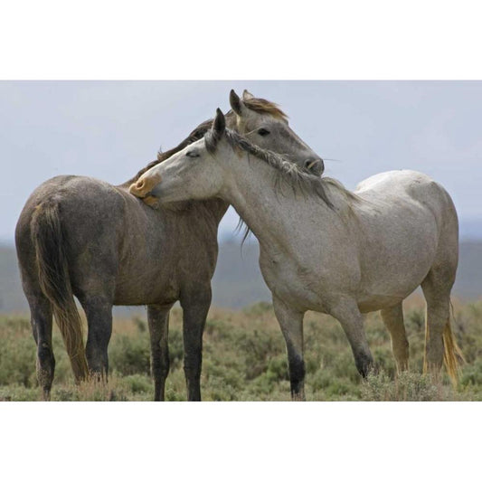 Wyoming, Carbon Wild horses grooming each other Gold Ornate Wood Framed Art Print with Double Matting by Illg, Cathy and Gordon