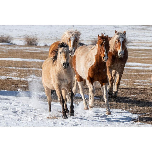 USA-Colorado-Westcliffe Music Meadows Ranch Herd of mixed breed horses running in the snow Gold Ornate Wood Framed Art Print with Double Matting by Hopkins, Cindy MillerRegular price From $49.99 USDRegular priceUnit price per-
