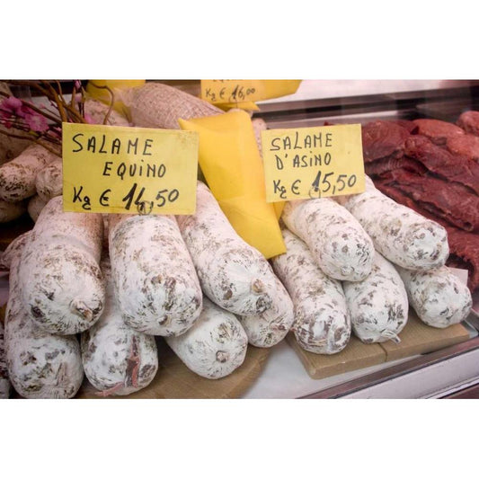 Italy, Venice Horse meat products for sale Gold Ornate Wood Framed Art Print with Double Matting by Kaveney, Wendy