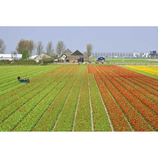 Netherlands, Lisse Tulip farm flower fields Gold Ornate Wood Framed Art Print with Double Matting by Flaherty, Dennis