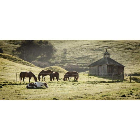 USA, California, Olema Horses and old barn Gold Ornate Wood Framed Art Print with Double Matting by Paulson, Don
