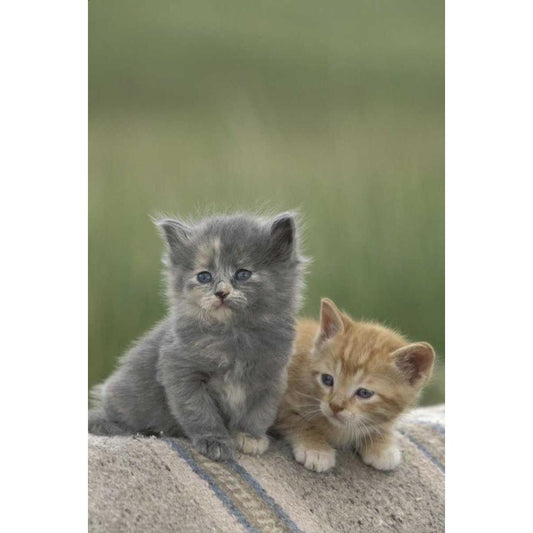 CO, Divide Barn kittens pose on a horse blanket Gold Ornate Wood Framed Art Print with Double Matting by Grall, Don