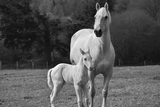 Palomino Horse and Colt White Modern Wood Framed Art Print with Double Matting by The Yellowstone Collection