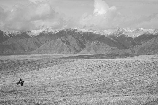 Shadow Rider White Modern Wood Framed Art Print with Double Matting by The Yellowstone Collection