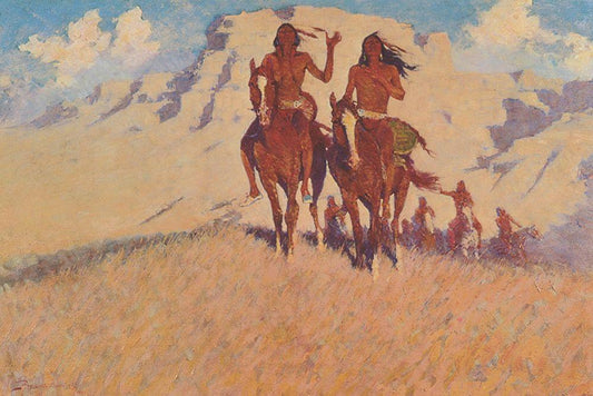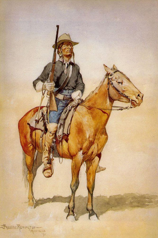 Indian Soldiers in the Crow Scout Corps White Modern Wood Framed Art Print with Double Matting by Remington, Frederic