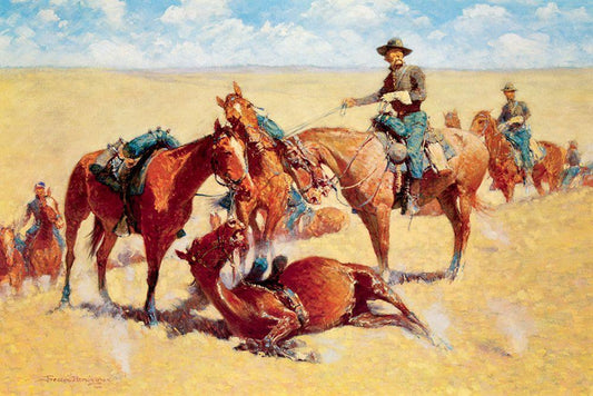 A Cold Morning on the Range White Modern Wood Framed Art Print with Double Matting by Remington, Frederic