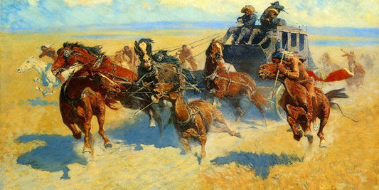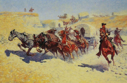 Attack on the Supply Wagons White Modern Wood Framed Art Print with Double Matting by Remington, Frederic