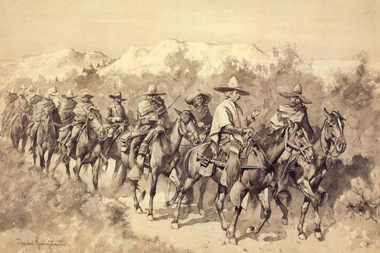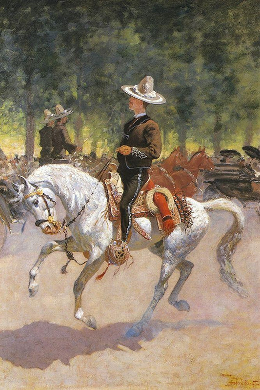 Caballeros White Modern Wood Framed Art Print with Double Matting by Remington, Frederic