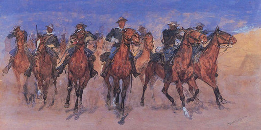 Captain Dodges Colored Troopers to the Rescue White Modern Wood Framed Art Print with Double Matting by Remington, Frederic