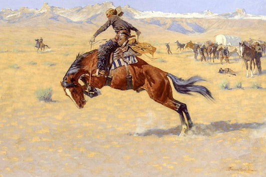 Cow Pony White Modern Wood Framed Art Print with Double Matting by Remington, Frederic